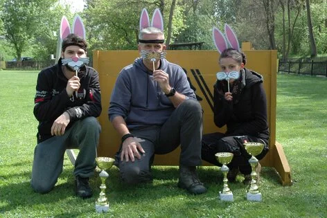 Auf diesem "teuflischen Osterlaufparcour" zeigten alle Teilnehmer mit ihren Hunden vollen Einsatz - sei es beim Laufen oder auch beim Lachen auf der Terrasse.